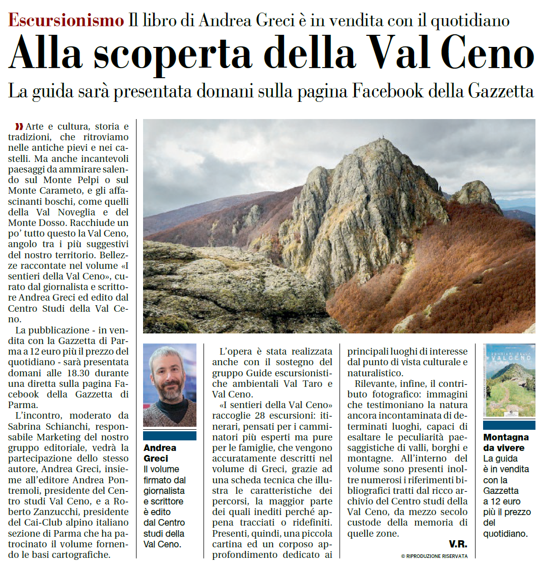 “i sentieri della Val Ceno” è in vendita in edicola con la Gazzetta di Parma a 12 € più il prezzo del quotidiano.