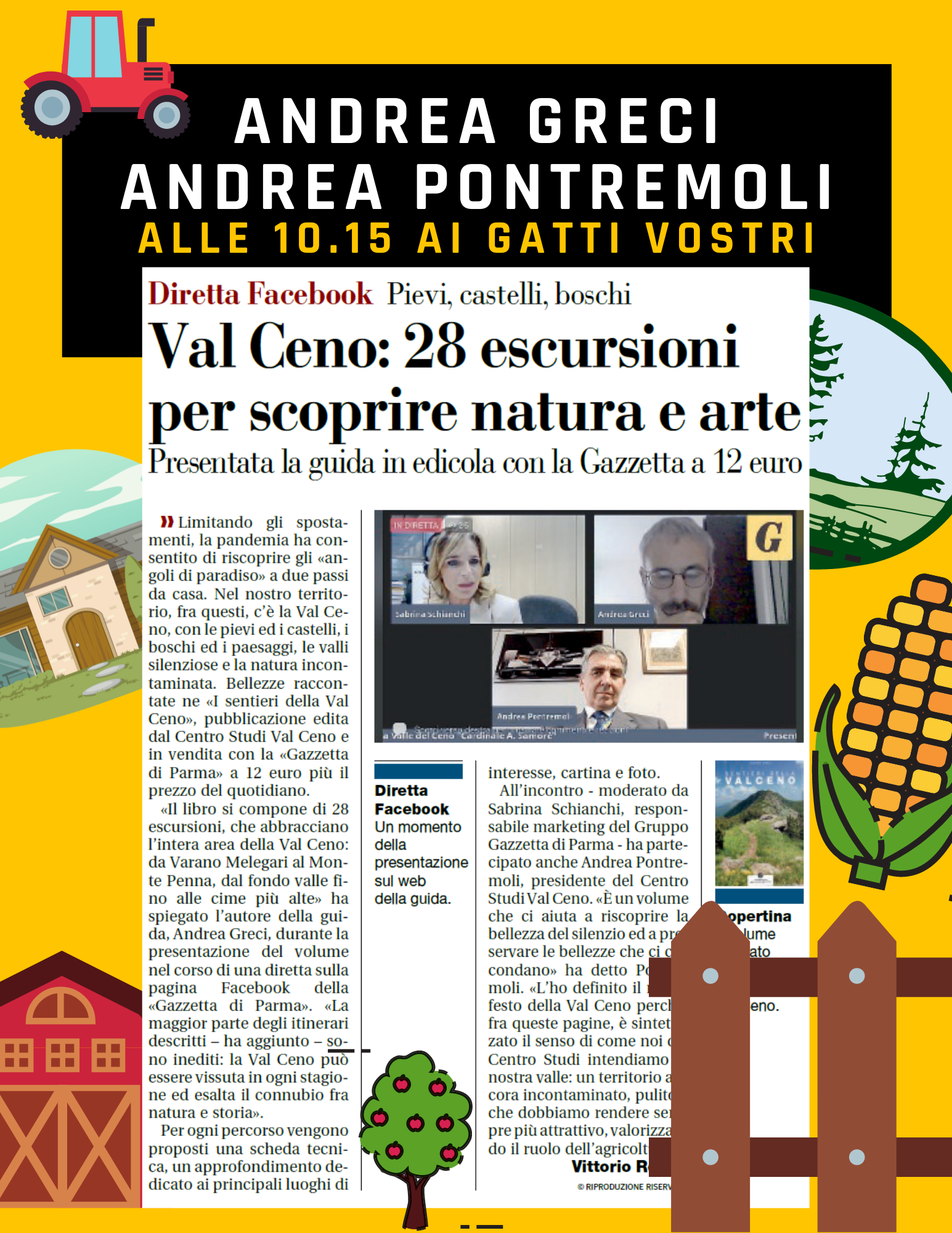 Ospiti in questo podcast ai microfoni di Andrea Gatti sono Andrea Greci (giornalista e scrittore) e Andrea Pontremoli Presidente del Centro Studi Valle del Ceno (e Amministratore delegato Dallara), rispettivamente autore ed editore della guida ” I sentieri della Val Ceno”.