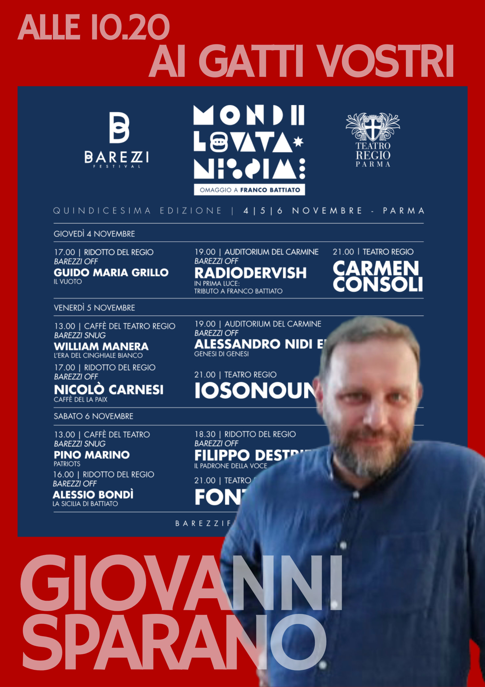 E’ Giovanni Sparano, Direttore Artistico del Barezzi Festival, l’ ospite di questo podcast per presentarvi la nuova edizione, la quindicesima, del Festival intitolato quest’ anno “Mondi lontanissimi”, ispirato a Franco Battiato.