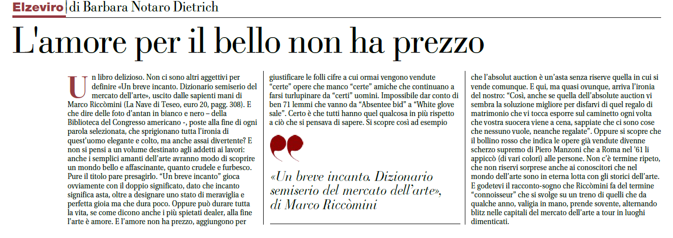 Presenta il suo nuovo libro del quale si è occupata anche la Gazzetta di Parma nella giornata di Domenica 10 Ottobre 2021 “Un breve incanto, Dizionario semiserio del mercato dell’ arte”.